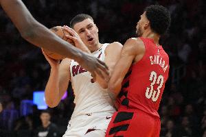 体育资讯11月9日讯 热火136-131战胜开拓者。赛后,热火球员哈克斯接受媒体采访时,谈到了队友约维奇,后者本场打出生涯之夜。