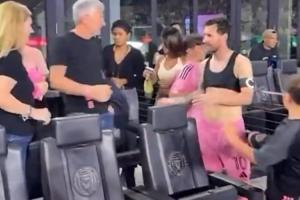 赛后在场边梅西与家人聊着,梅西的儿子马特奥酝酿后一脚踢在梅西屁股上。