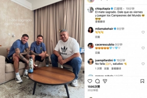 塔皮亚社媒写道:“神圣的马黛茶。来吧,今天是星期五,世界冠军要上场了 😎😎😎”